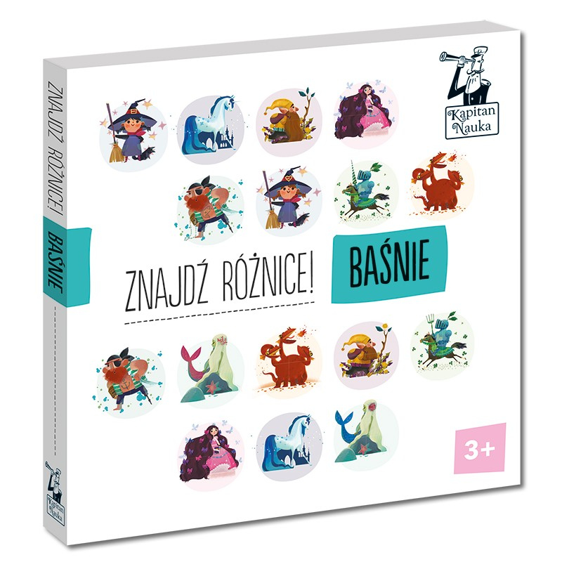 Ciekawie ilustrowana książeczka Znajdź różnicę Baśnie zabiera dziecko do magicznego świata pełnego fascynujących stworzeń. Czarownica, cyklop czy syrena to jedne z 10 pięknych postaci, które poznają dzieci! Fascynujący bohaterowie wywołają uśmiech na twarzach każdego dziecka i dorosłego!
