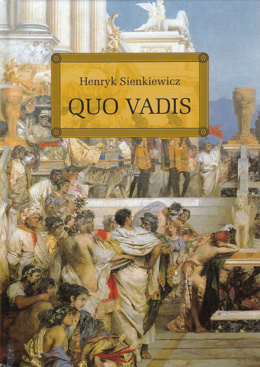 Rzym za czasów cesarza Nerona to miejsce zderzenia dwóch światów - zapatrzonej w siebie, kipiącej od bogactw, pełnej zabaw, uczt i zepsucia rzeczywistości Imperium Rzymskiego oraz rodzącej się kultury chrześcijańskiej, tak odmiennej od wszystkiego, co do tej pory znali ludzie. Z pierwszego z owych światów pochodzi Winicjusz, z drugiego Ligia - a jednak tych dwoje tak bardzo odmiennych ludzi połączy miłość silniejsza od wszelkich uczuć, jakich dane im było doświadczyć. Historia ich związku, a także historia szalonego cesarza, pożaru Rzymu i okrutnego prześladowania wyznawców Chrystusa to tło, na którym rozwija się przed oczami czytelnika moc i potęga religii chrześcijańskiej, rozpoczynającej właśnie swój pochód drogą, na której na zawsze zmieni świat. [greg.pl]