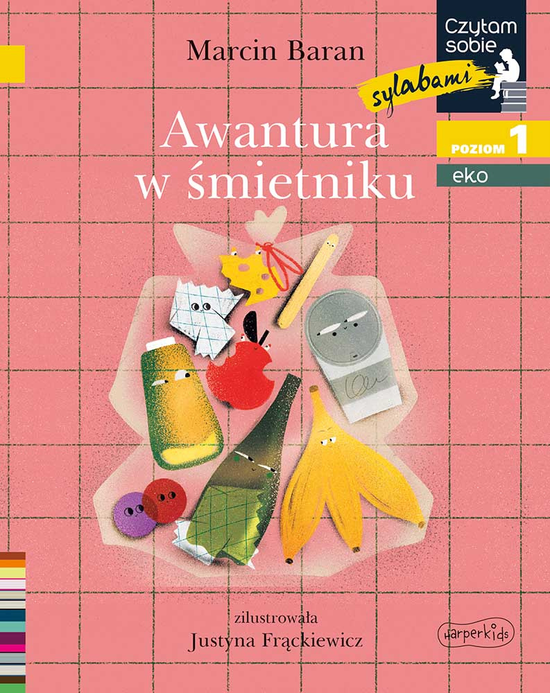 Awantura w śmietniku / Marcin Baran ; zilustrowała Justyna Frąckiewicz. - Warszawa : HarperKids - HarperCollins Polska, copyright 2025. - 31, [1] strona, [1] karta tablic : ilustracje kolorowe ; 19 cm.